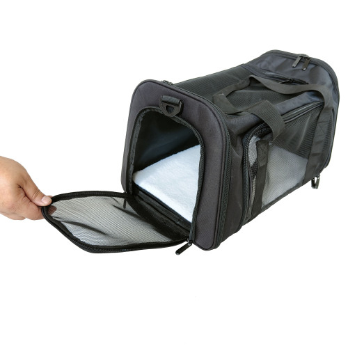 Five Expanded Entrances,Easier To Access: 1 Top-loading,2 large side doors,1 front entrance and 1 back entrance. All entry sizes are increased compared to the other pet carriers in the market,which makes it easy for your pet to get in or out without getting scratched.This pet carrier bag fits for medium cats,large cats or small dogs,especially for cat parents who keep more than 2 cats.