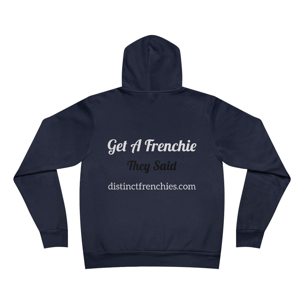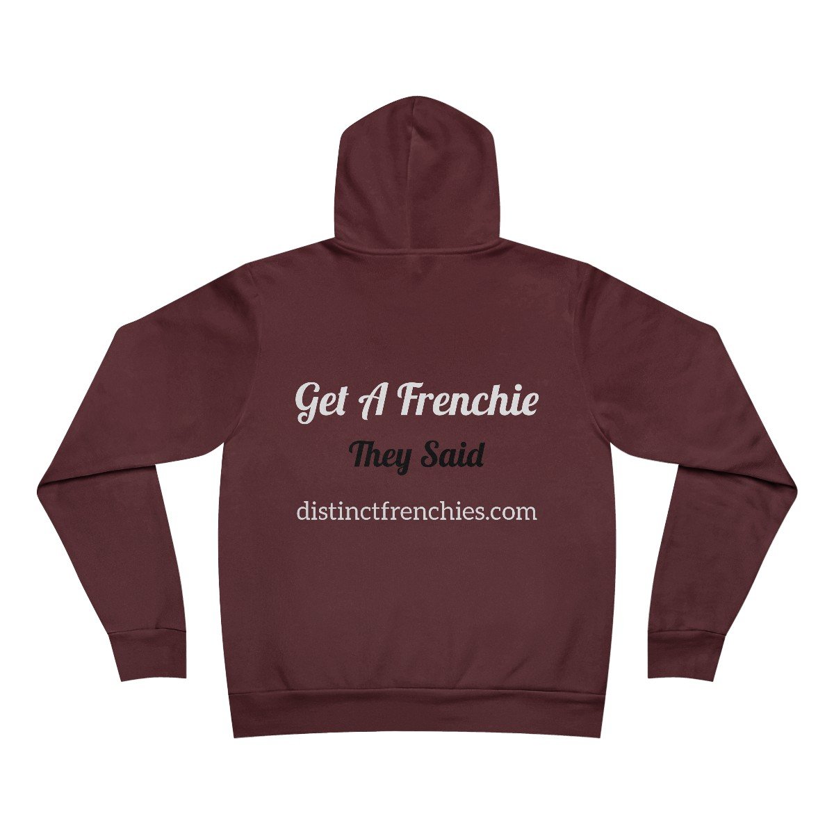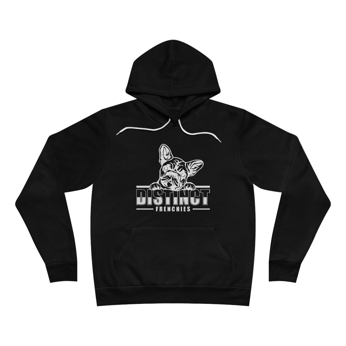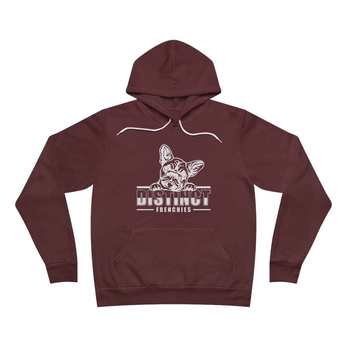 The unisex sponge fleece pullover hoodie is a blend of Airlume cotton and polyester. The percentages vary according to color. A pouch-style pocket spreads across the lower half of the garment’s front. The hood can be tightened with a white drawcord. Both cuffs and waistband have ribbing for extra grip.